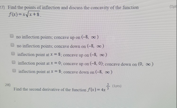 Find The Coordinates Of The Point Of Inflection Of The Curve F X from doubtnut-static.s.llnwi.net And the inflection point is at x = −2/15. Watch the video explanation about concavity, inflection points, and second derivative online, article, story, explanation, suggestion, youtube. Hi, i have a list of 256 x's and y's. Is there any way to find correct points on matlab? Inflection points are points where the function changes concavity, i.e. How to find inflection points. Curves have a variety of features that can be classified and categorized. From the graph we can then see that the inflection points are $b,e,g,h$.